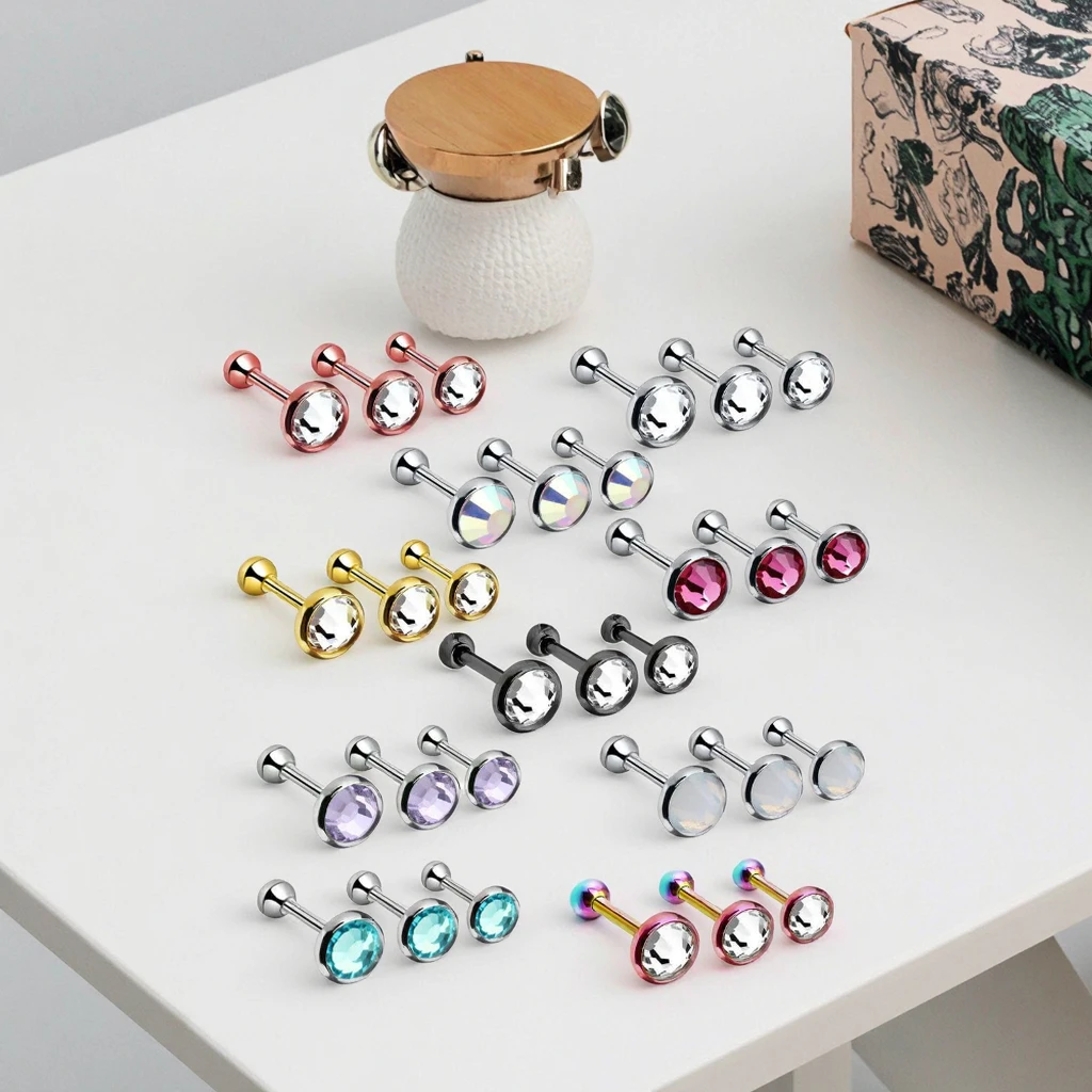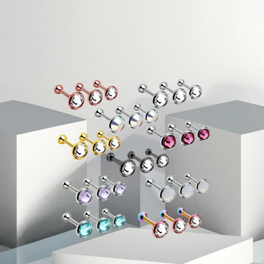 Surgical Steel Gem Barbell Ear Cartilage Tragus Cartilage Barbell Helix Stud Earring Piercing Fashion Body Jewelry